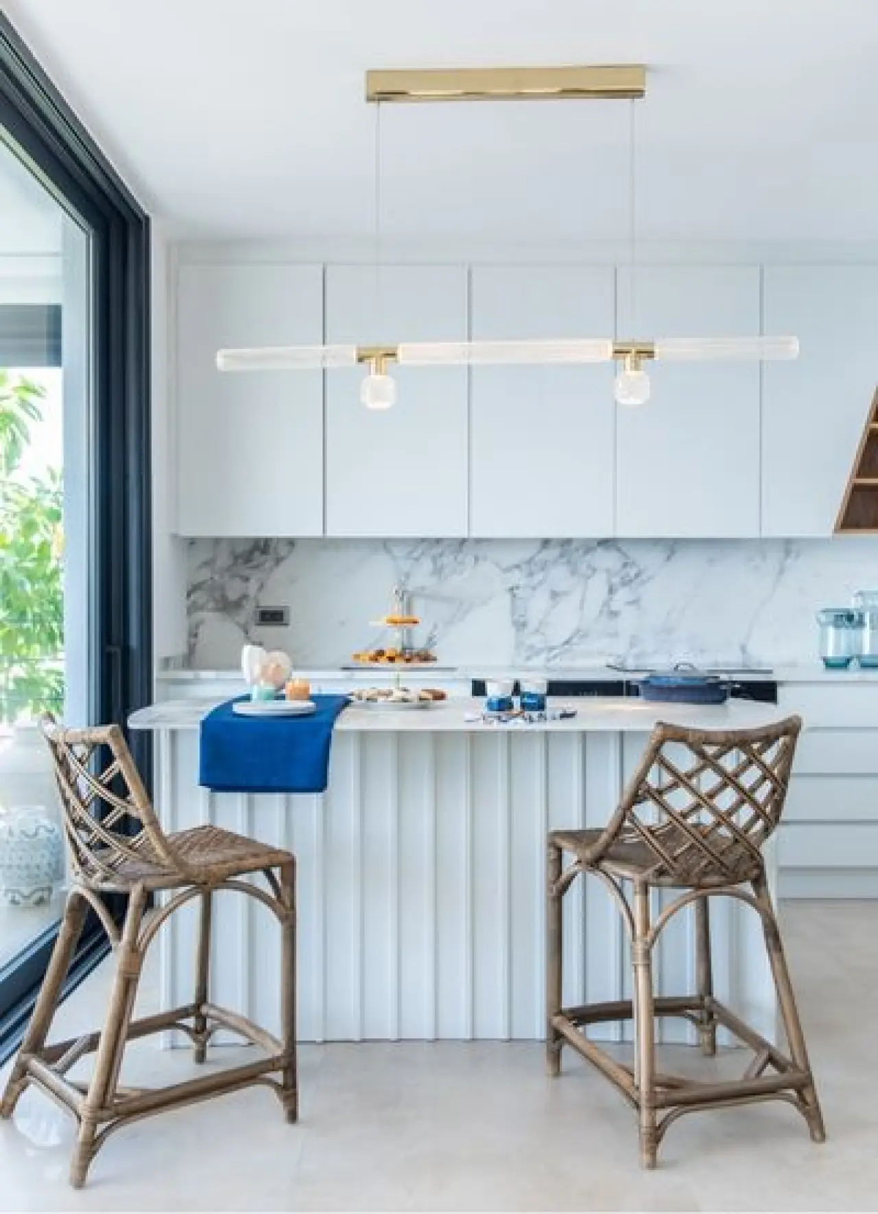 🔹 Mutfak: Kulpsuz dolaplar, taş görünümlü tezgahlar, açık raf sistemleri