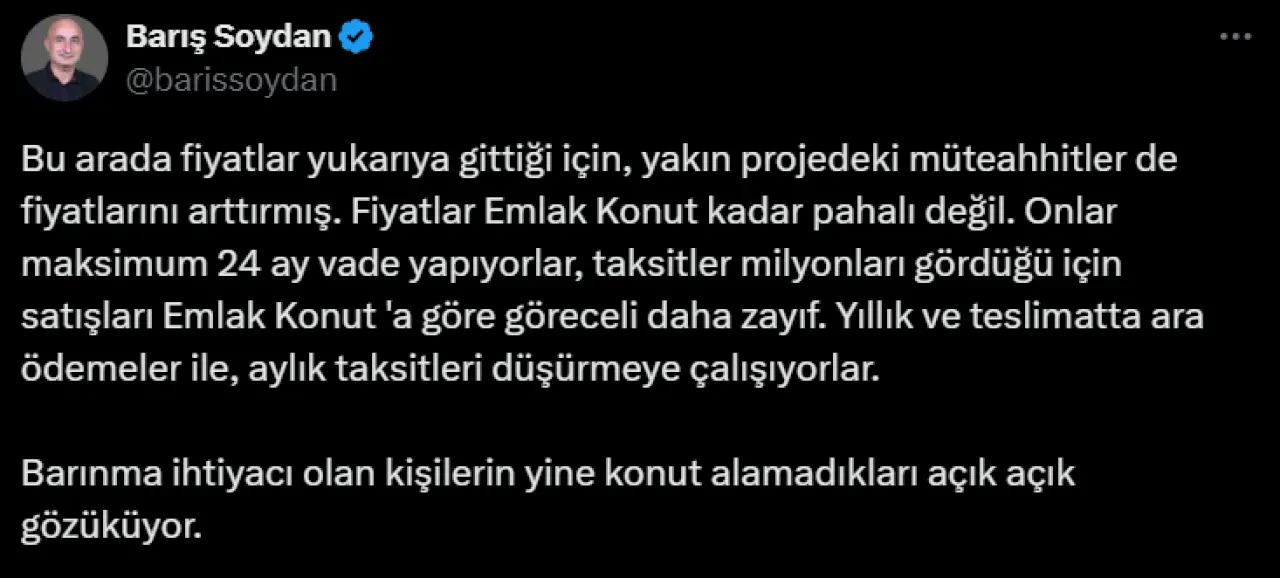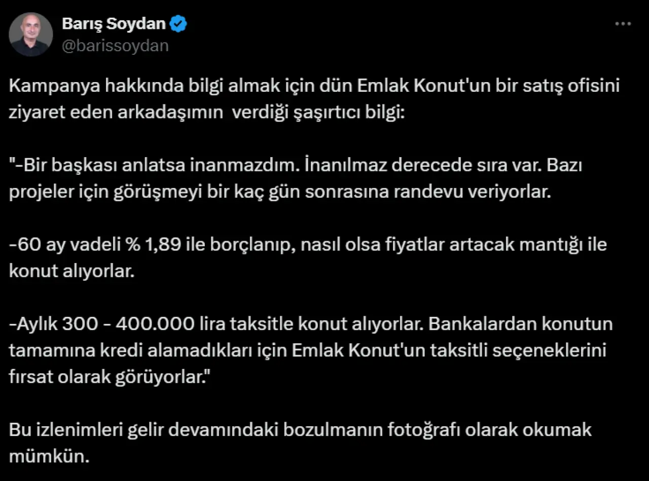 Ekonomist Barış Soydan'ın paylaşımı şu şekilde:
