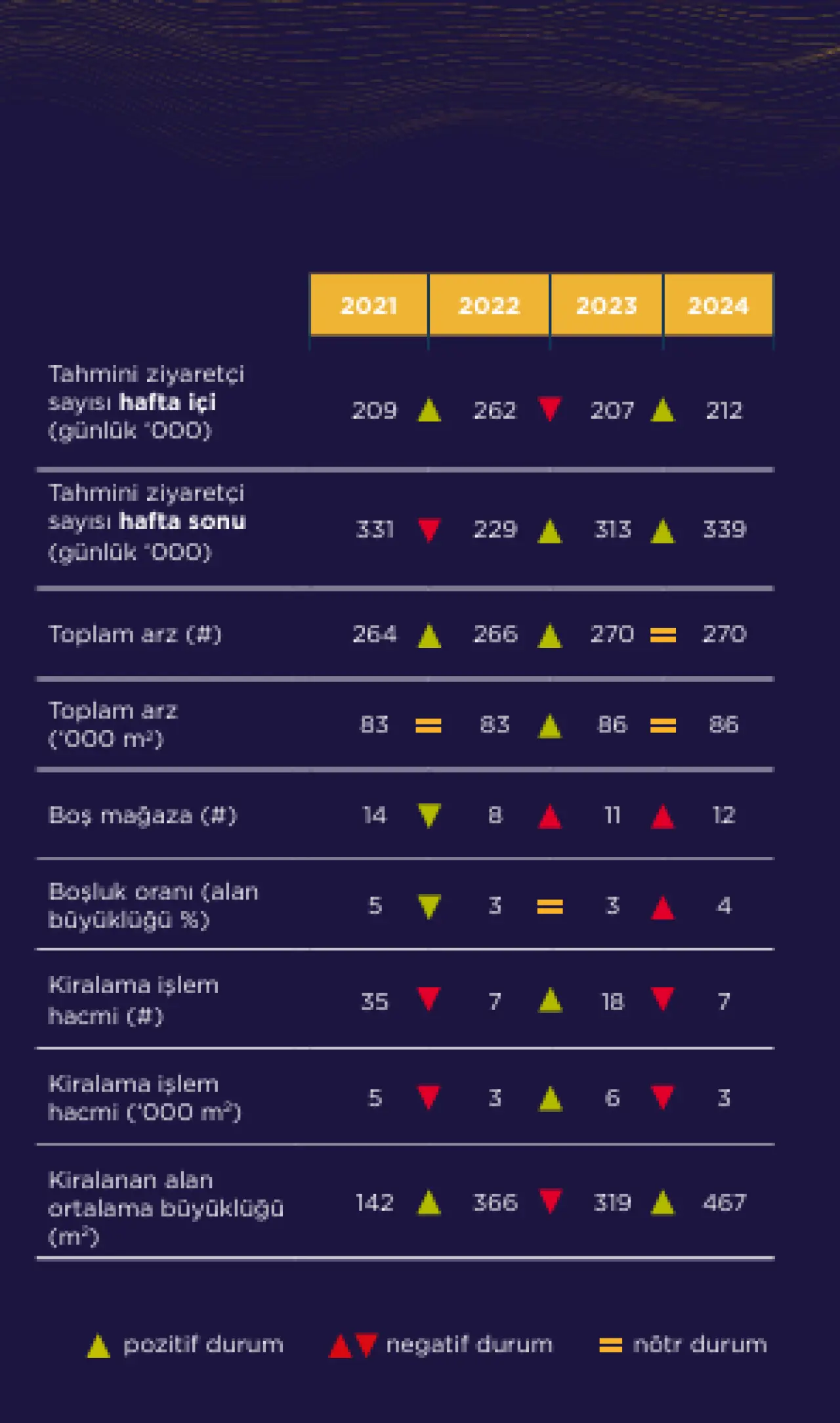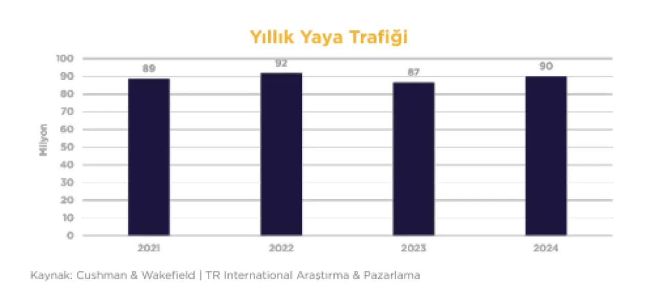 Mağazaların mevcut yerlerini koruma eğilimiyle yer değişiminin azaldığı, boş kiralanabilir alanların ise azalmaya devam ettiği değerlendirildi. Talepteki canlılığın devam ettiği caddelerde, sınırlı arzın etkisiyle birincil kiraların son sekiz yılın en yüksek seviyesinde yerini koruduğu vurgulandı. 2024 yılında İstiklal Caddesi ve Nişantaşı bölgesinde yaya trafiğinin dikkate değer şekilde artış kaydettiği görüldü. Buna göre, caddelerde düzenlenen kültürel etkinlikler ve yeni kültür sanat alanlarının bölgeye kazandırılması bu hareketin başlıca etkeni olarak ortaya çıktı.